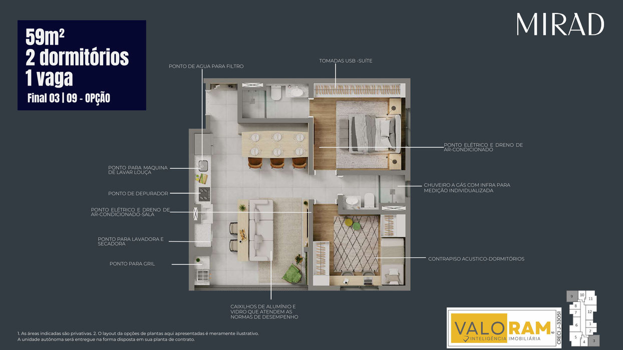 O Mirad é o empreendimento que une conforto, sofisticação e praticidade. Localizado no bairro da Saúde, oferece uma experiência única de moradia, com apartamentos modernos, áreas de lazer completas e acabamento de alto padrão.